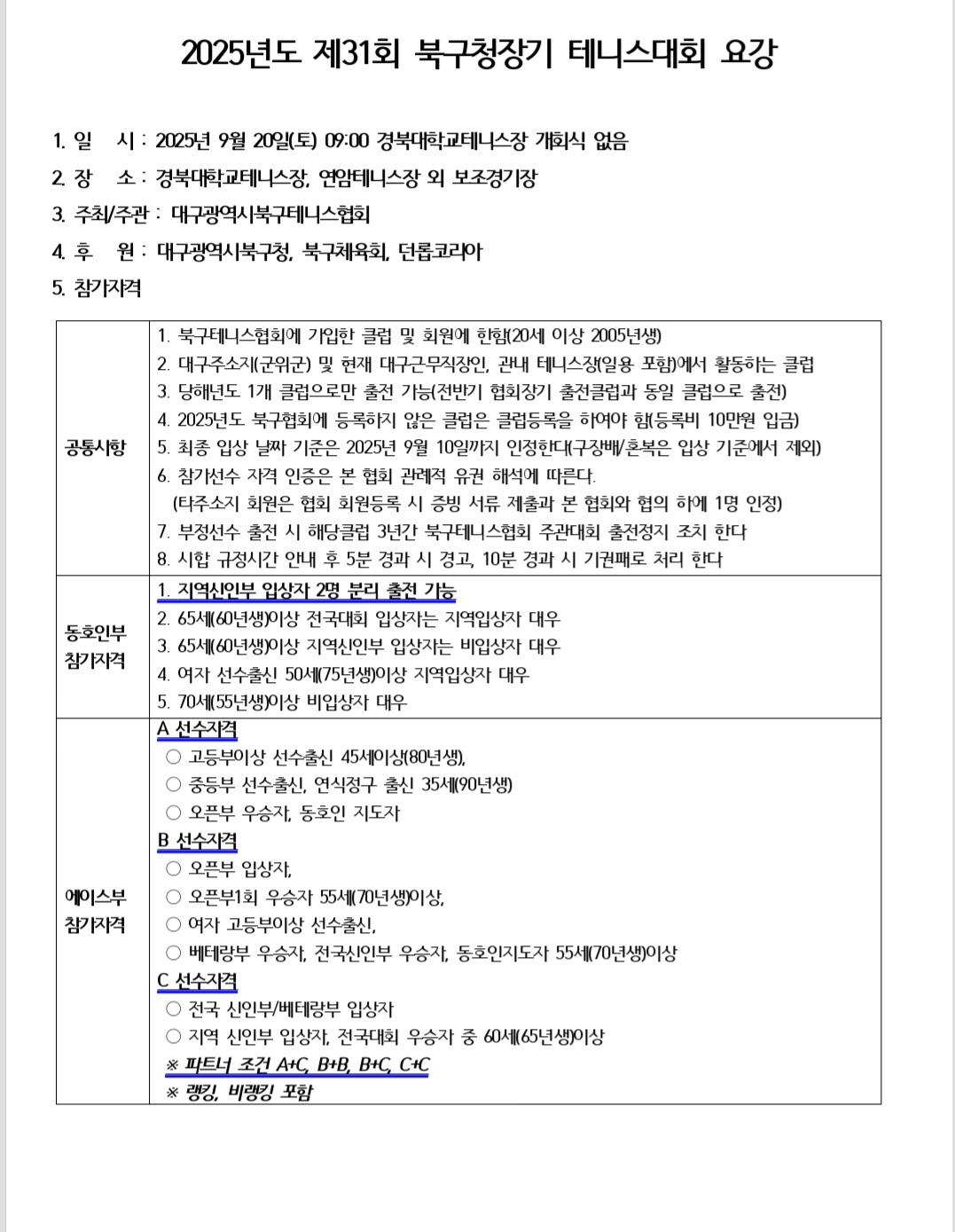 2025³âµµ Á¦31ȸ ºÏ±¸Ã»Àå±â Å״Ͻº´ëȸ